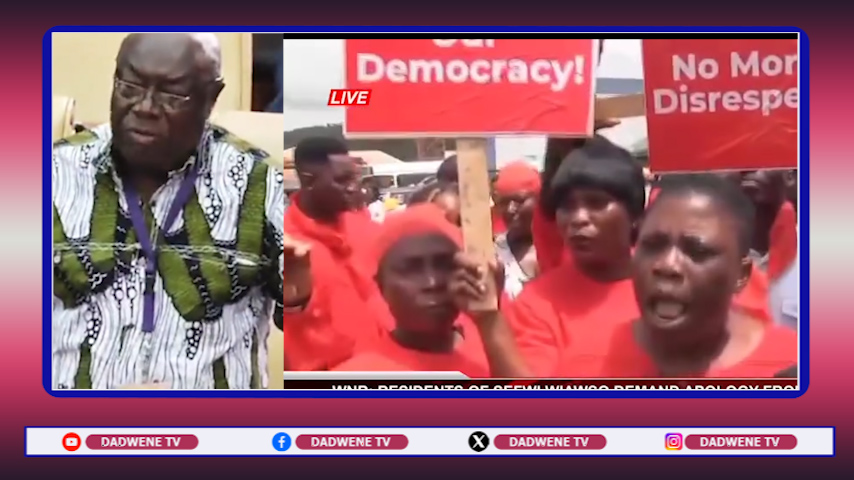 Dressed in red outfits and chanting war songs, the Sefwi Wiawso residents said Dr. Kwaku Afriyie has done a lot for Ghana and should not be disrespected like that. One protester stated, “Dr. Afriyie is an elderly man and even without that, he is someone who has done a lot for Ghana so he should not be disrespected like that.”