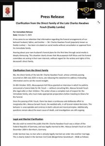 The release also noted that since Daddy Lumba’s passing on 26th July 2025 in Accra, there had been “a continuous and deliberate effort to marginalise” his legal wife in funeral discussions. The family further revealed that the cause of death remains under investigation.