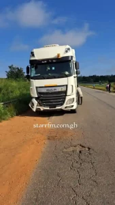 The motorcycle was being ridden by Solomon Okyere, 28, with two pillion riders: Corporal Richmond Atta Essandoh, aged 38, a personnel of Suhum District Police, and John Teye, 20, a student of Suhum Presby Secondary Technical School.