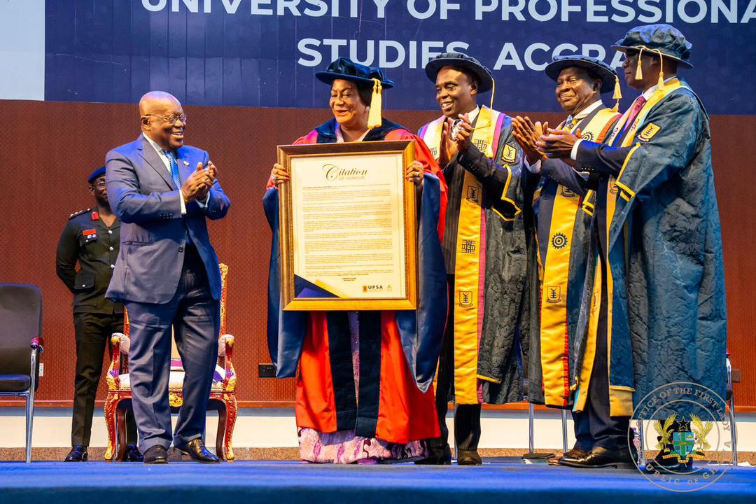Accra, December 12, 2023 – In a momentous ceremony, First Lady Rebecca Akufo-Addo was bestowed with an honorary doctorate degree of Humane Letters from the prestigious University of Professional Studies (UPSA) in Accra.
