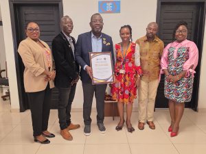 A team from University of Ghana and Mangel Klicks ( From left) Dr. Mrs. Angela Ackon, Prof. Samuel Kojo Kwofie, Dr. Charles Kwamena Ackon, Prof. Elsie Effah Kaufmann, Dr. Vitus Atanga Apalangya, and Engr. Mrs. Ruth Appiah.