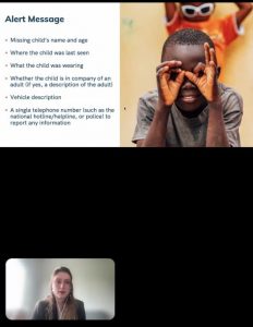 Zoé Colpaert, HEROES/Europe Program Manager at ICMEC, led the session, emphasizing the paramount importance of focusing on missing children and providing a comprehensive overview of Amber Alerts. Madam Colpaert delved into the history of Amber Alerts, the benefits of an alert system, existing alert systems, and the distinction between photo distribution frameworks and Rapid Emergency Child Alert Systems. Additionally, she highlighted the do’s and don’ts in the dissemination of photos of missing children.