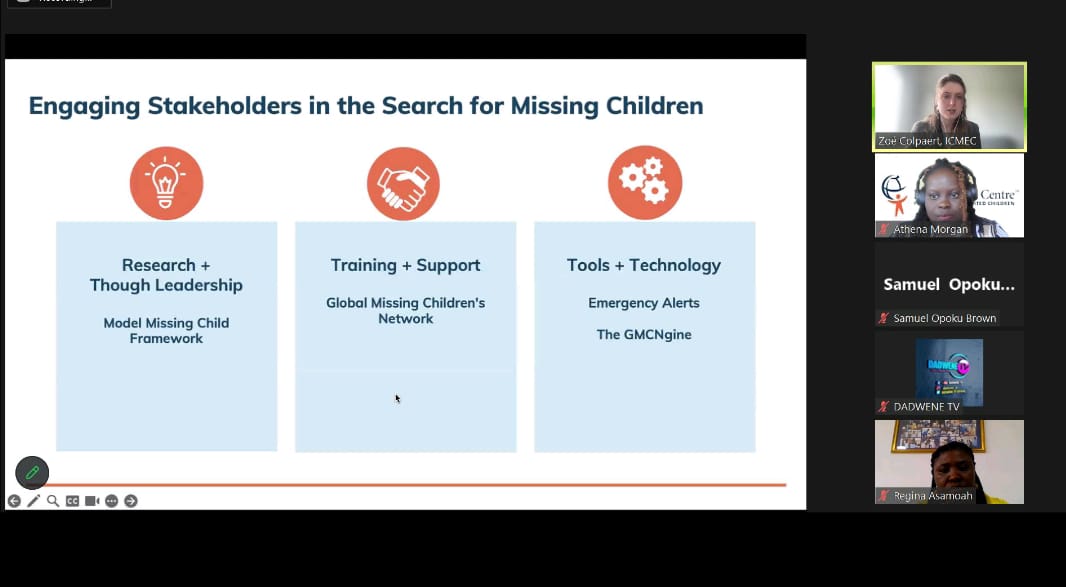 Home NewsMissing Children Ghana Collaborates with ICMEC for Virtual Round Table Discussion on Amber Alerts and Photo Dissemination for Missing Children