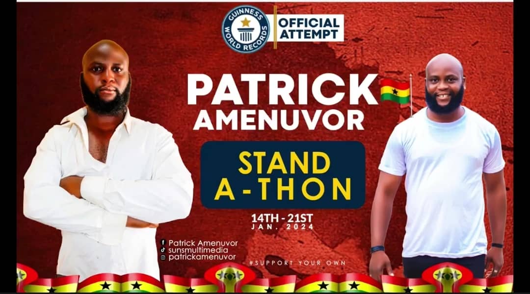 With an ambitious goal of setting a new Guinness World Record in 2024, Patrick will be standing from today, January 14 to Sunday, January 21, 2024. The marathon is currently underway at the GEM church at North Legon.